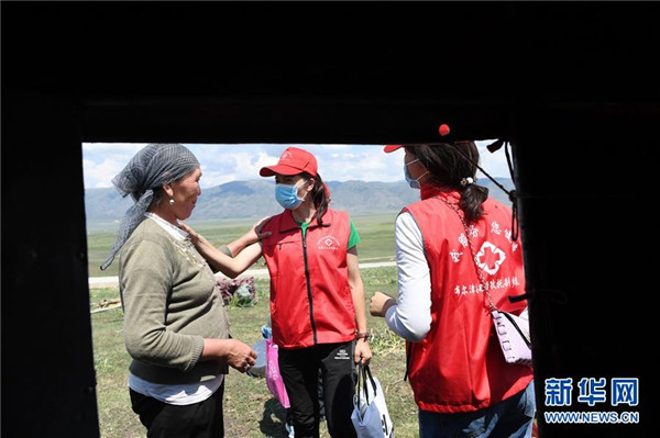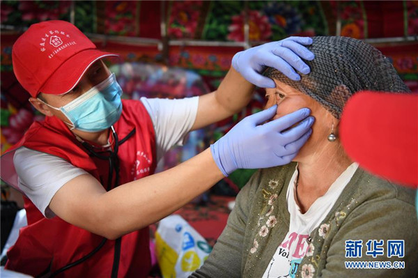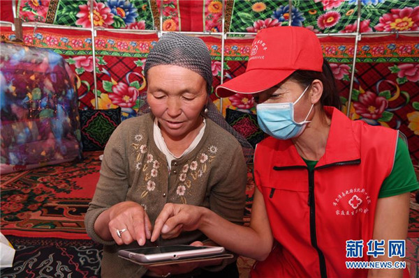 6月20日,新疆阿勒泰地區(qū)布爾津縣也格孜托別鄉(xiāng)克孜勒托蓋村村醫(yī)來到布爾津縣黑流灘草原給牧民巴合提古麗·塔拉甫汗檢查身體。圍繞實現(xiàn)人人享有基本醫(yī)療衛(wèi)生服務(wù)目標(biāo),2016年起,新疆布爾津縣開展家庭醫(yī)生簽約服務(wù)工作。該縣組建家庭醫(yī)生簽約團(tuán)隊65個,團(tuán)隊醫(yī)務(wù)人員233名,通過手機APP、基本公衛(wèi)系統(tǒng)與全縣建檔立卡貧困戶進(jìn)行電子化簽約,提升村醫(yī)隨訪的工作效率和質(zhì)量。截至目前,已完成簽約42936人,履約40043人。新華社記者沙達(dá)提攝