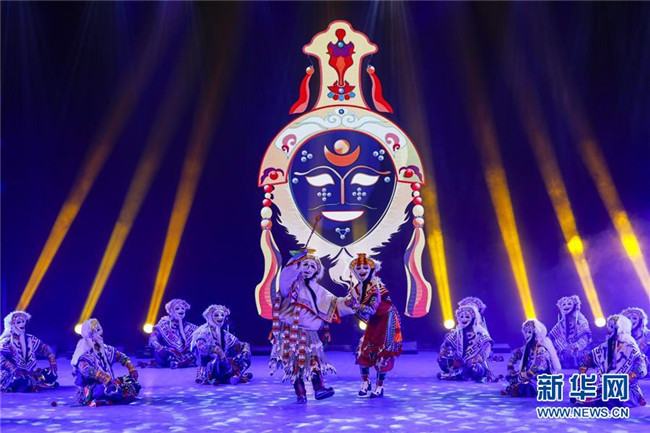 四川省阿壩藏族羌族自治州阿壩縣“蓮寶葉則”演藝公司演職人員在表演傳統(tǒng)曲種《折嘎》(6月14日攝)。折嘎是古老的曲種,如今被搬上舞臺(tái),并在演唱中加入了傳遞吉祥、贊頌新人新事新風(fēng)尚的內(nèi)容。這些演職人員中不少是從當(dāng)?shù)剜l(xiāng)村里來(lái)的年輕人,經(jīng)過(guò)培訓(xùn)合格后成為演員,通過(guò)表演獲得穩(wěn)定的收入。新華社記者 沈伯韓 攝