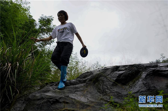 7月1日,在重慶永川區(qū),地災(zāi)監(jiān)測員侯芳走在崎嶇的山道上,進(jìn)行巡查監(jiān)測工作。新華社記者 劉潺 攝
