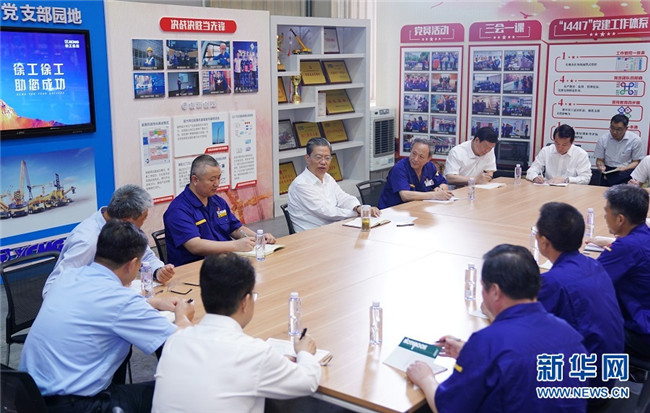 7月19日至22日,中共中央政治局常委、中央紀(jì)委書(shū)記趙樂(lè)際到江蘇調(diào)研。這是7月20日,趙樂(lè)際在徐工集團(tuán)徐州重型機(jī)械有限公司與職工代表座談交流。 新華社記者 張領(lǐng) 攝