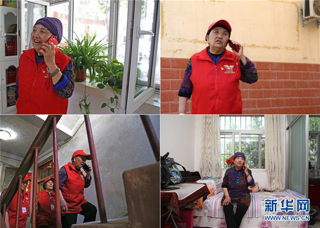 這是一張拼版照片。左上圖為:王蘭花在蘭花志愿服務(wù)站組織活動(dòng)間隙接聽(tīng)電話(6月23日攝);左下圖為:王蘭花在探望裕西社區(qū)老黨員的途中接聽(tīng)電話(6月23日攝);右上圖為:王蘭花在裕西社區(qū)巡邏間隙接聽(tīng)電話(6月23日攝);右下圖為:王蘭花下班回到家后接聽(tīng)電話(6月23日攝)。由于平日經(jīng)常收到群眾求助,接聽(tīng)電話成為王蘭花工作和生活中的常態(tài)。新華社記者 賈浩成 攝