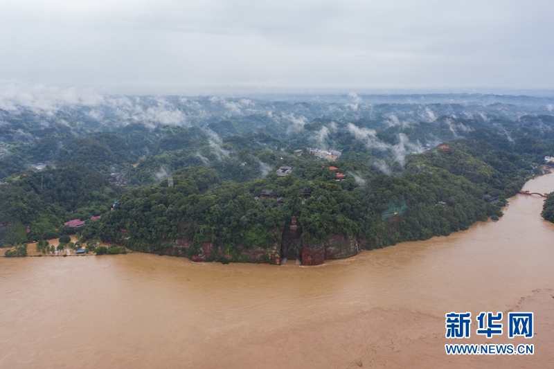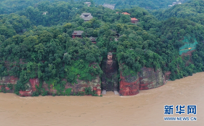 洪水中的樂山大佛。