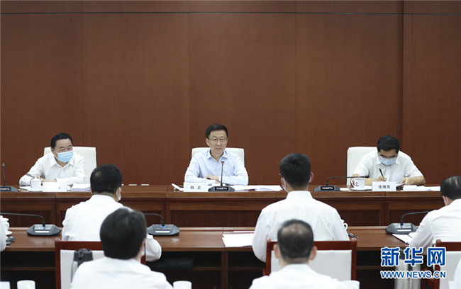 8月18日,中共中央政治局常委、國務院副總理韓正在國家石油天然氣管網(wǎng)集團有限公司調研并主持召開座談會。 新華社記者 丁海濤 攝