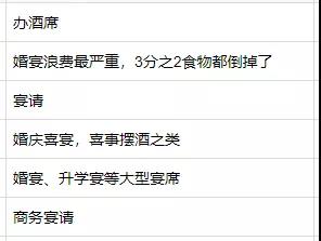 在調(diào)查問卷的后臺(tái)留言中,不少受訪者留言說,同學(xué)會(huì)、紅白宴、生日宴、升學(xué)宴、商務(wù)宴請等浪費(fèi)量較高,甚至有人說“三分之二的食物都倒掉了”。