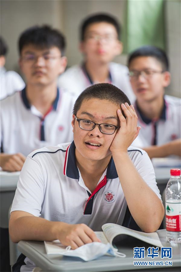 9月1日,武漢中學(xué)高一七班的學(xué)生在上英語課。當(dāng)日,武漢市2842所中小學(xué)、幼兒園迎來開學(xué),涉及學(xué)生139.9萬人,百萬學(xué)子重返校園。新華社記者肖藝九攝