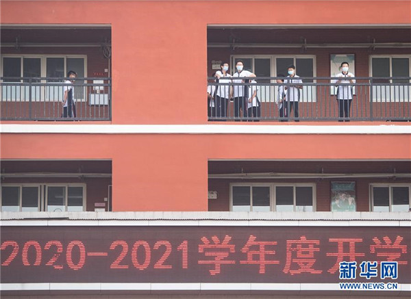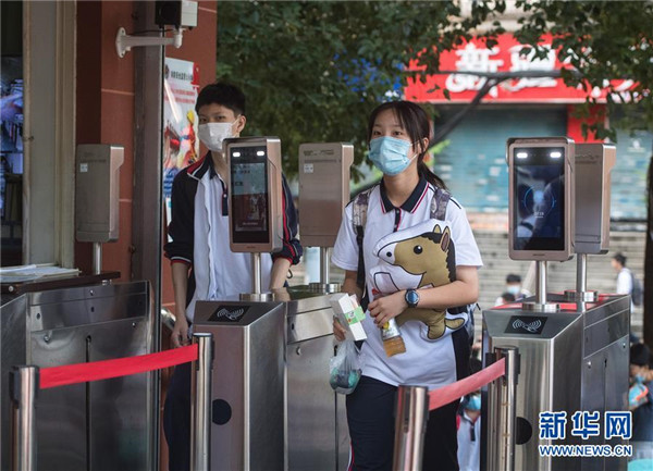 9月1日,武漢中學(xué)的學(xué)生進(jìn)入校園。當(dāng)日,武漢市2842所中小學(xué)、幼兒園迎來開學(xué),涉及學(xué)生139.9萬人,百萬學(xué)子重返校園。新華社記者肖藝九攝