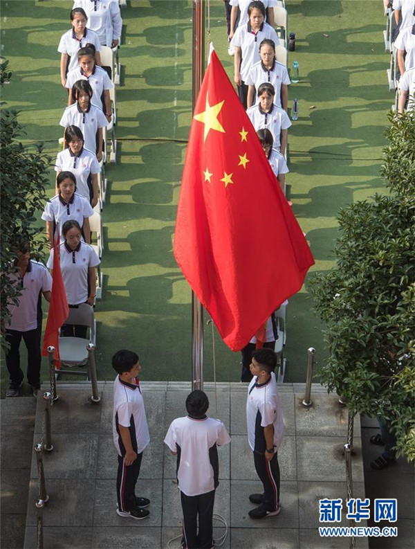 9月1日,武漢中學(xué)的開學(xué)典禮舉行升旗儀式。當(dāng)日,武漢市2842所中小學(xué)、幼兒園迎來開學(xué),涉及學(xué)生139.9萬人,百萬學(xué)子重返校園。新華社記者肖藝九攝