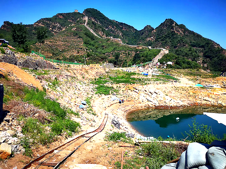 現(xiàn)場(chǎng)施工負(fù)責(zé)人杜勝軍說:“這段長(zhǎng)城維修難點(diǎn)是運(yùn)輸,今年水位下降比較厲害,增加了運(yùn)輸難度。”