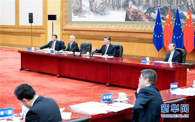 國(guó)家主席習(xí)近平14日晚在北京同歐盟輪值主席國(guó)德國(guó)總理默克爾、歐洲理事會(huì)主席米歇爾、歐盟委員會(huì)主席馮德萊恩共同舉行會(huì)晤,會(huì)晤以視頻方式舉行。中德歐領(lǐng)導(dǎo)人就中歐關(guān)系深入交換意見(jiàn),為下階段中歐關(guān)系規(guī)劃方向,確定重點(diǎn)領(lǐng)域,一致同意加強(qiáng)溝通協(xié)調(diào)合作,確保今后中歐之間一系列重大政治議程取得成功,深化互信,實(shí)現(xiàn)互利共贏,堅(jiān)持維護(hù)多邊主義,共同應(yīng)對(duì)全球性挑戰(zhàn),推動(dòng)中歐關(guān)系邁向更高水平。中歐雙方宣布簽署《中歐地理標(biāo)志協(xié)定》,確認(rèn)加快中歐投資協(xié)定談判,實(shí)現(xiàn)年內(nèi)完成談判的目標(biāo)。中歐決定建立環(huán)境與氣候高層對(duì)話和數(shù)字領(lǐng)域高層對(duì)話,打造中歐綠色合作伙伴、數(shù)字合作伙伴關(guān)系。