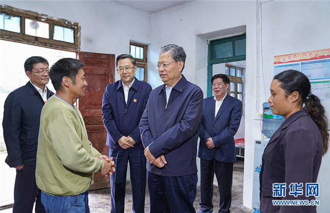 這是9月14日,趙樂際來到畢節(jié)市威寧縣格書村,走訪慰問貧困戶。 新華社記者 張領(lǐng) 攝
