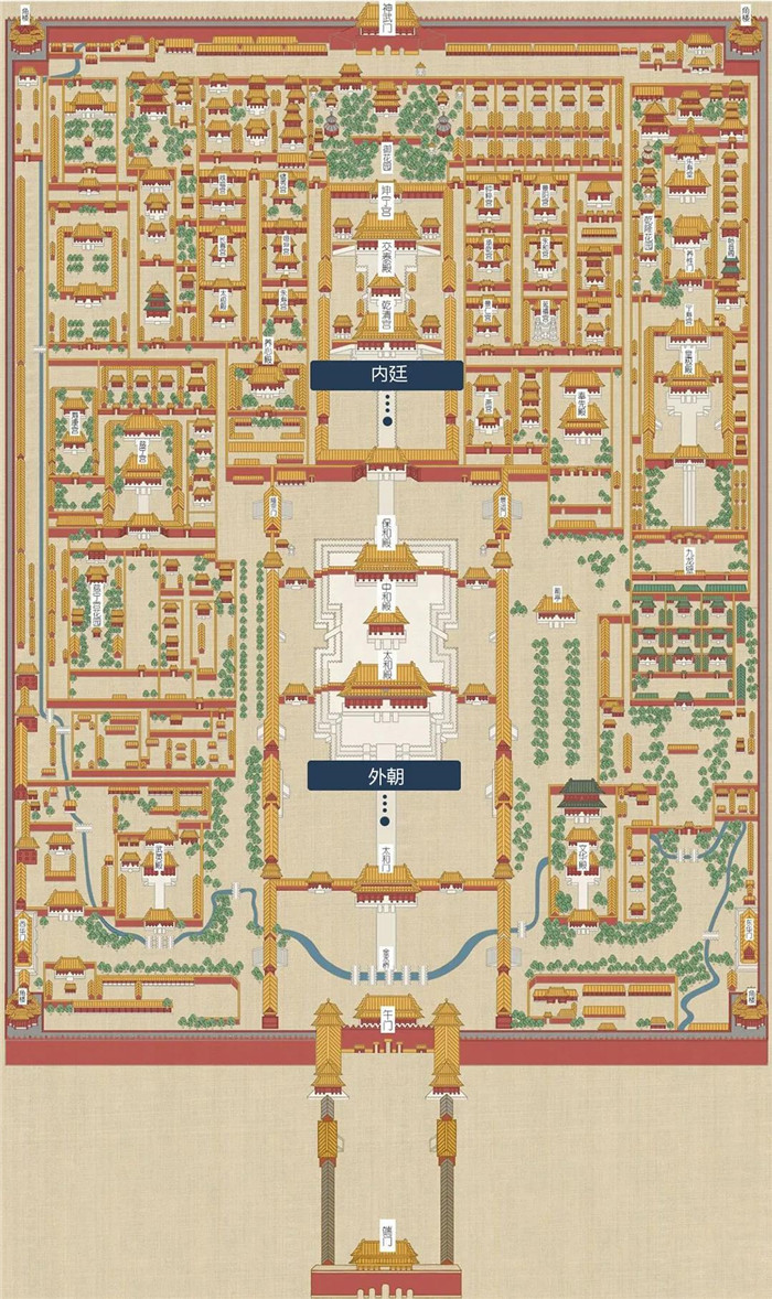 ▲故宮“外朝內(nèi)廷”分布。圖片來源:故宮博物院官網(wǎng)