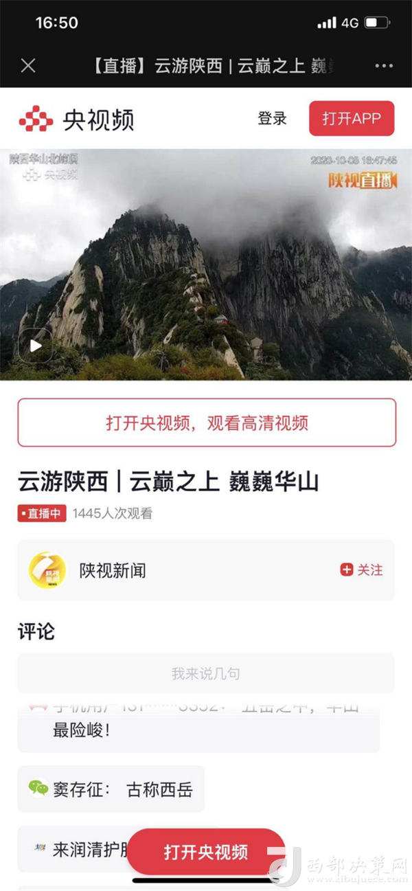 節(jié)前與央視頻手機(jī)客戶端及陜視新聞手機(jī)客戶端提前對接并測試信號,確保黃金周期間全天24小時(shí)不間斷慢直播順利進(jìn)行,同時(shí)與央視、新華社、人民網(wǎng)、陜西日報(bào)、陜西電視臺、渭南日報(bào)、渭南電視臺及省內(nèi)主流網(wǎng)絡(luò)媒體聯(lián)系對接,確保黃金周期間各項(xiàng)工作有序推進(jìn)。