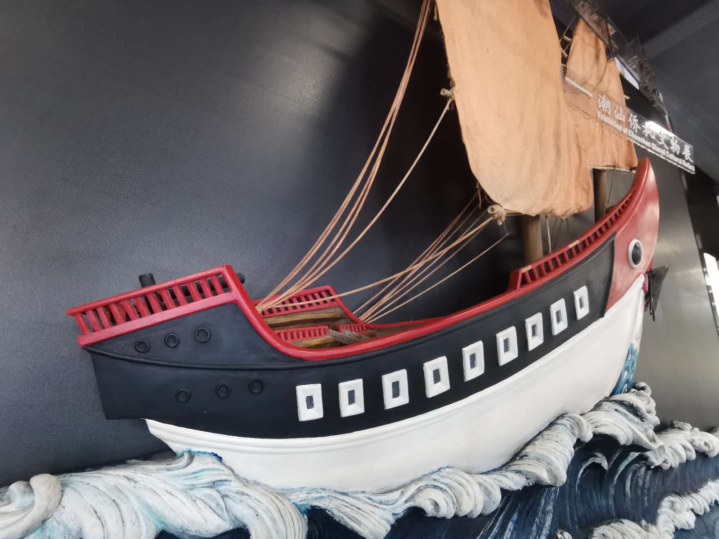△當(dāng)年潮汕人到海外謀生,出洋所乘的是這種高桅桿的紅頭船。如今紅頭船已成為潮汕人“團結(jié) 拼搏 拓展 創(chuàng)新”的精神象征。(總臺央視記者楊波拍攝)