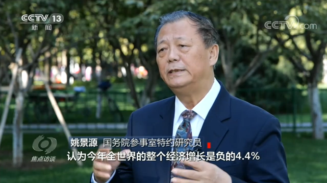 國務院參事室特約研究員姚景源說:“中國經濟現在已經全面、整體由負轉正。國際貨幣基金組織剛剛作出預測判斷,認為今年全世界經濟增長是負的4.4%,認為在世界主要經濟體當中,只有一個國家會保持正增長,那就是中國。”