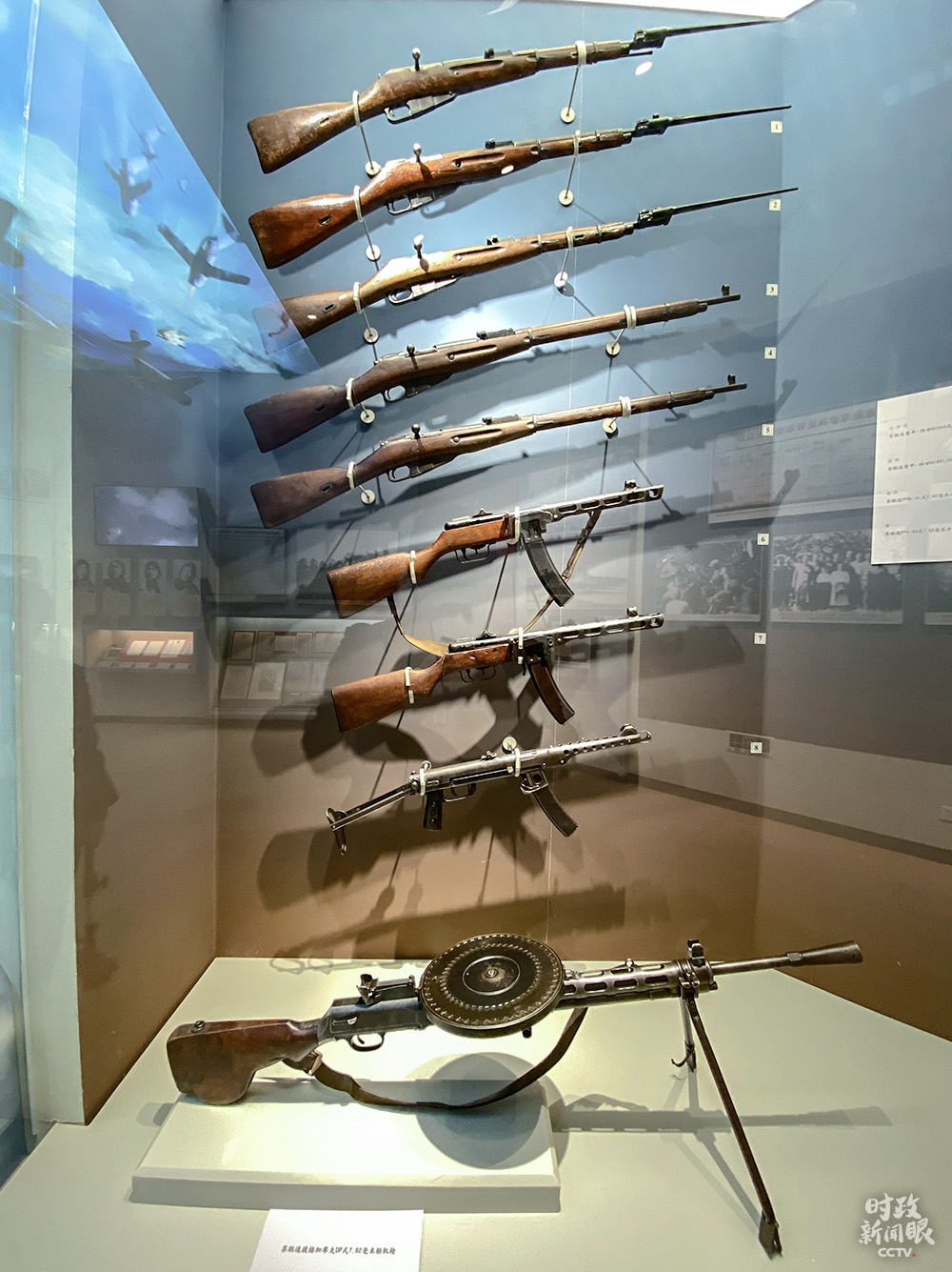 △圖中最下面是捷格加廖夫輕機(jī)槍,彈盤裝彈數(shù)量多。抗美援朝戰(zhàn)場上,志愿軍曾使用過這種火力兇猛的蘇式機(jī)槍。