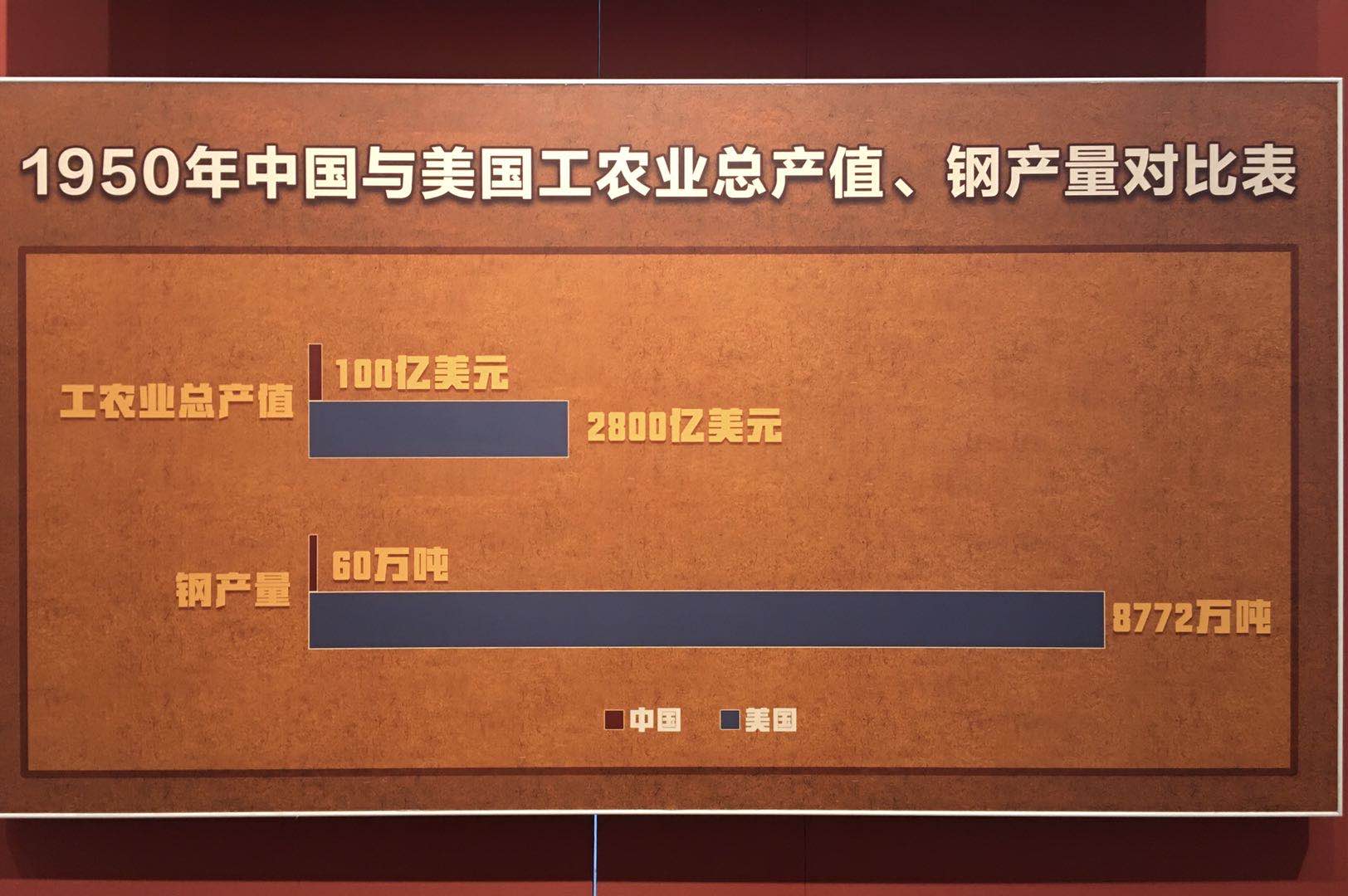 展廳里,一張對比圖,直觀展現了當時中美兩國在硬實力方面的巨大差距。