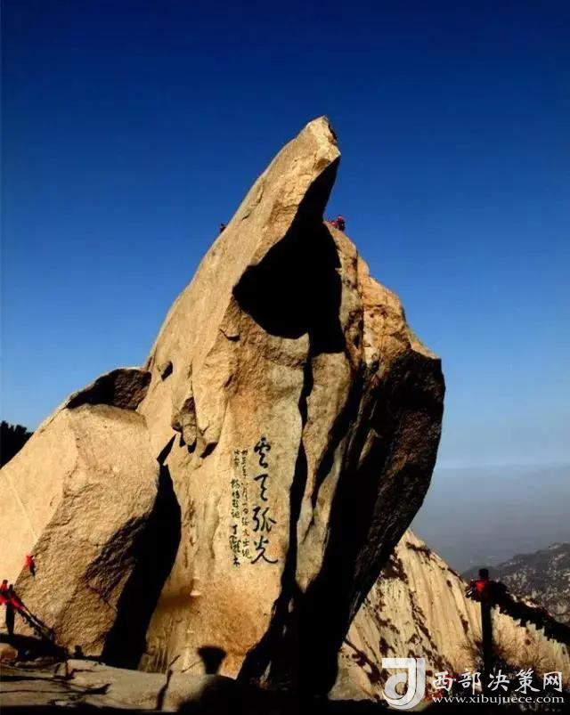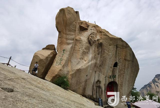 華山的美是“他”昂揚(yáng)風(fēng)姿、冠絕五岳的那份傲氣。華山的韻是“他”看不盡、摸不透的那份神秘。就在這萬(wàn)般火熱而五彩的氛圍中,就在這千百年的磨礪里,兩塊佇立在山中的一大一小的巨石更引起了探秘者的好奇和興趣。