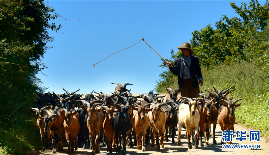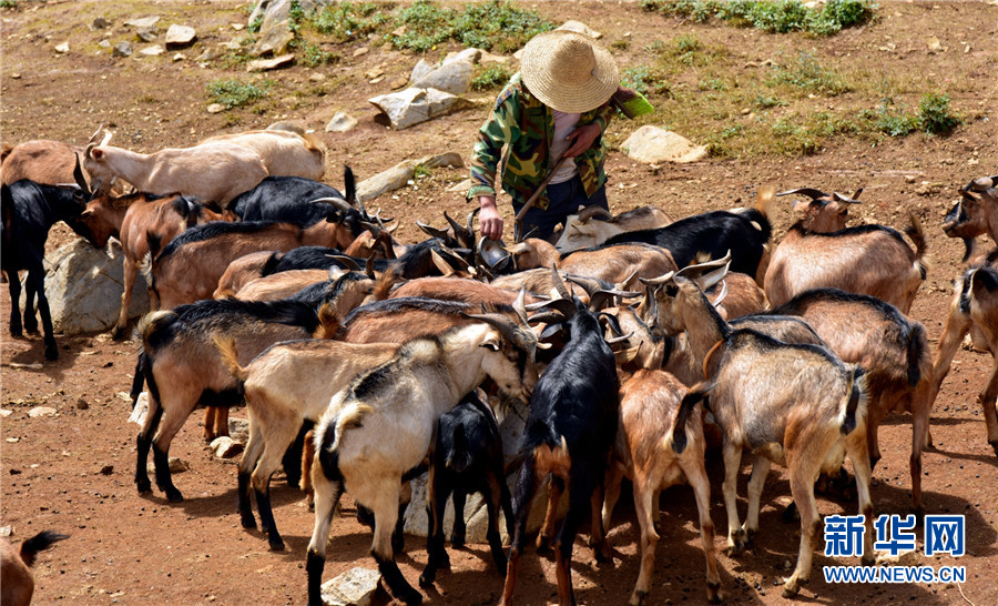 在云南省彌勒市東山鎮(zhèn)舍母村委會(huì)小橫山村,當(dāng)?shù)乩蒙鷳B(tài)草場(chǎng)優(yōu)勢(shì)大力發(fā)展生態(tài)羊養(yǎng)殖,戶(hù)均養(yǎng)殖100多只,成為村民們的致富新手段。(10月11日攝)。新華網(wǎng)發(fā)(普佳勇 攝)