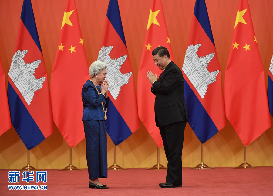 習(xí)近平強(qiáng)調(diào),這枚沉甸甸的“友誼勛章”,代表了中國(guó)人民對(duì)莫尼列太后的崇敬之情和對(duì)柬埔寨人民的深厚情誼,也象征著中柬兩國(guó)親密無(wú)間的友好感情。祝愿中柬兩國(guó)繁榮昌盛、人民幸福安康。祝愿兩國(guó)人民友誼地久天長(zhǎng)。