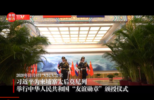 微紀(jì)錄丨習(xí)近平為柬埔寨太后莫尼列舉行中華人民共和國“友誼勛章”頒授儀式