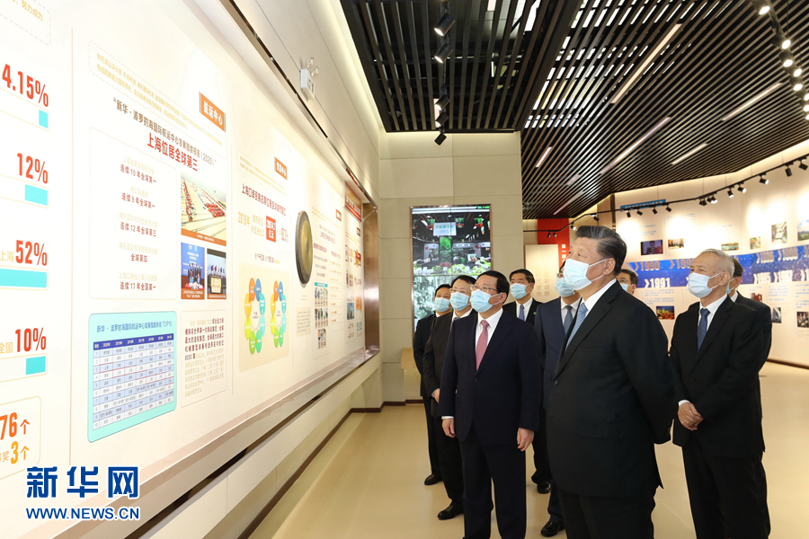 11月12日,浦東開發(fā)開放30周年慶祝大會在上海市舉行。中共中央總書記、國家主席、中央軍委主席習近平在會上發(fā)表重要講話。這是當天上午,習近平等參觀“在國家戰(zhàn)略的引領下——浦東開發(fā)開放30周年主題展”?!⌒氯A社記者 殷博古 攝