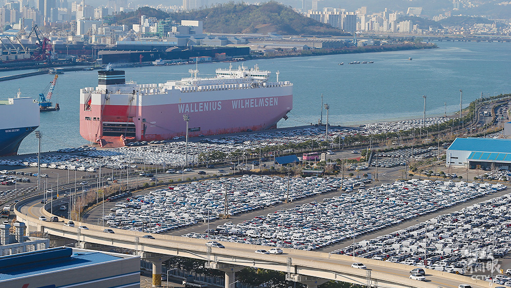 △今年9月,韓國在疫情暴發(fā)后首次實現出口正增長,同比增加7.6%。這是全球最大的汽車工廠——韓國蔚山汽車廠,擁有出口碼頭。