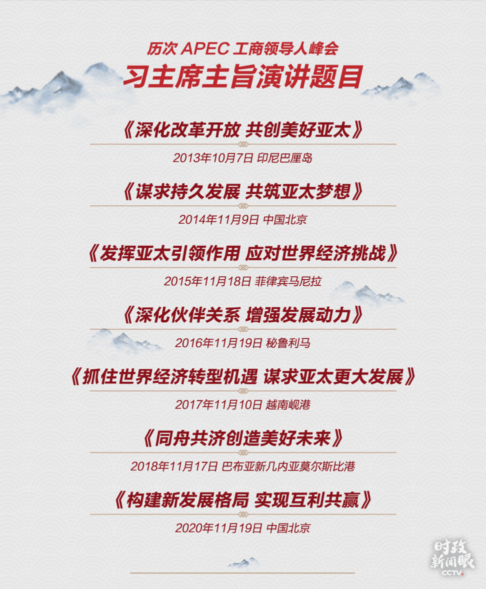 APEC工商領導人峰會有一個傳統(tǒng),就是邀請包括中國在內的大國領導人發(fā)表演講。2013年以來,從印尼巴厘島到巴布亞新幾內亞莫爾斯比港,習主席曾連續(xù)六年出席APEC工商領導人峰會并發(fā)表主旨演講。今年是他第七次在這一場合發(fā)表演講。