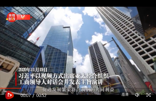 11月19日,習近平主席在北京以視頻方式出席亞太經合組織(APEC)工商領導人對話會。在全球正在探索世界經濟復蘇道路之時,習主席發(fā)表題為《構建新發(fā)展格局 實現互利共贏》的主旨演講,深入闡述中國提出的構建新發(fā)展格局這一戰(zhàn)略抉擇,為推動世界經濟復蘇提供中國動力。
