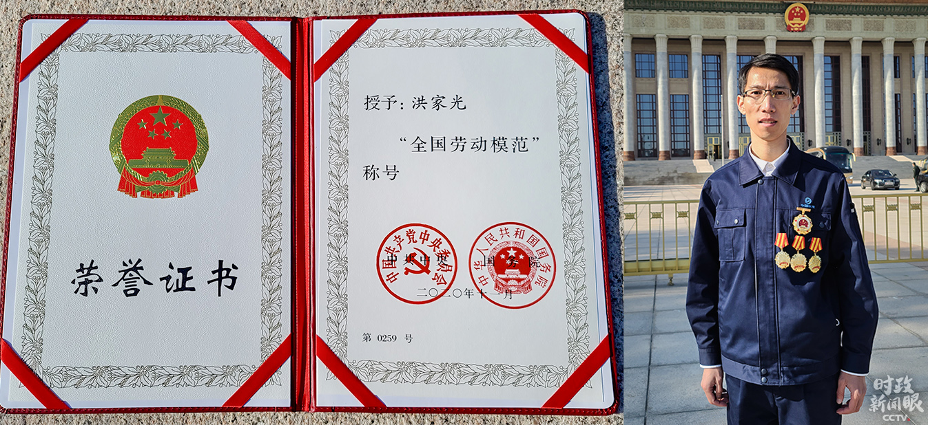 今年獲得全國勞動模范稱號的洪家光,代表所有受表彰者上臺宣讀倡議書。