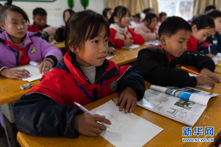 云南省鎮(zhèn)雄縣以古鎮(zhèn)巖洞腳九年一貫制學(xué)校的孩子們?cè)谏险n(11月11日攝)。新華社記者 王冠森 攝