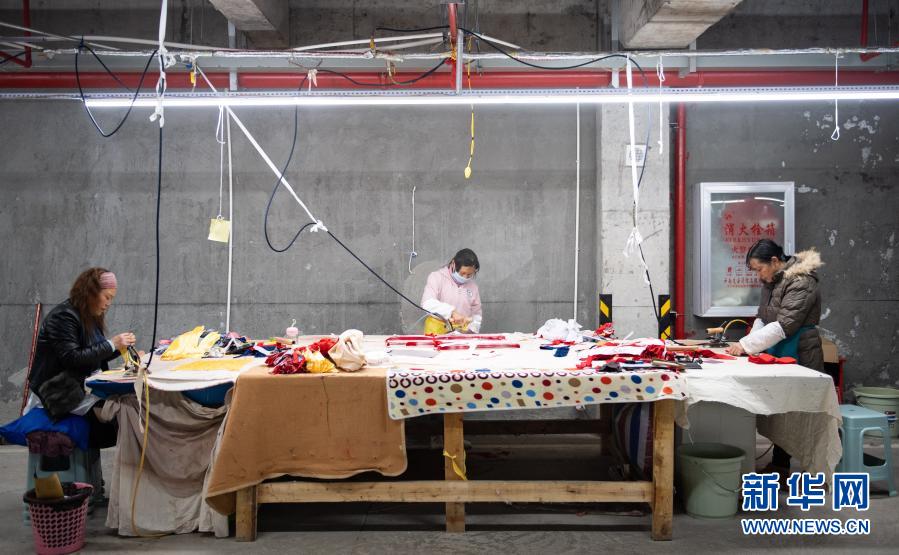 云南省鎮(zhèn)雄縣魯家院子易地扶貧搬遷安置點(diǎn)的居民在制衣扶貧車間內(nèi)工作(11月13日攝)。新華社記者 王冠森 攝