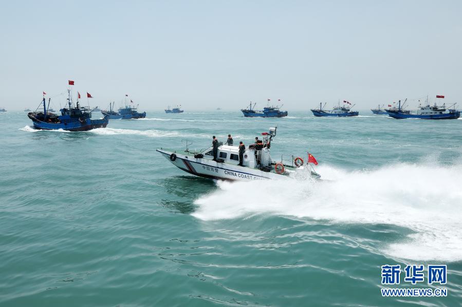 海警執(zhí)法員加強(qiáng)海域巡邏,防止黑惡勢力滋擾作業(yè)漁船(8月16日攝)。新華社發(fā)(翟少華 攝)
