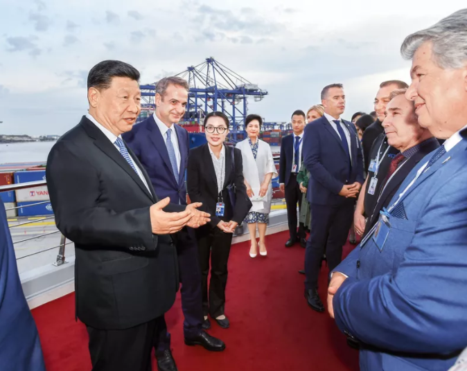 △2019年11月,習近平參觀中遠海運比雷埃夫斯港項目。