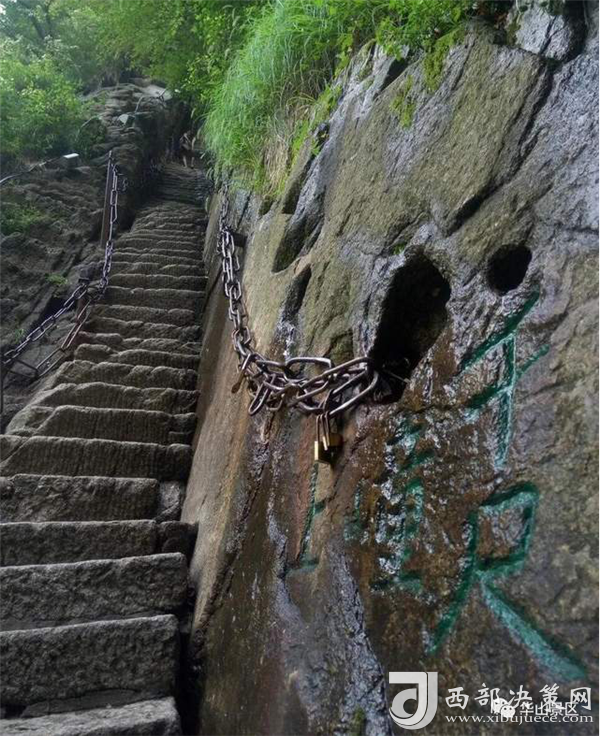 華山的登山之路蜿蜒曲折,到處都是懸崖絕壁。智取華山路開辟之前,華山只有一條十分陡峭的道路可以通到山上,人們常用“自古華山一條道”的說法來形容它的險要。