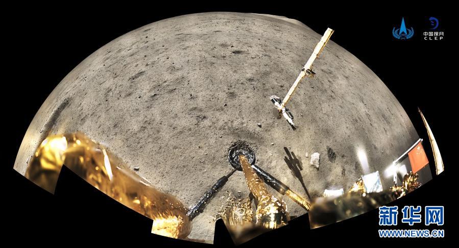 12月4日,國家航天局公布了探月工程嫦娥五號(hào)探測(cè)器在月球表面國旗展示的照片。嫦娥五號(hào)著陸器和上升器組合體全景相機(jī)環(huán)拍成像,五星紅旗在月面成功展開,此外圖像上方可見已完成表取采樣的機(jī)械臂及采樣器。新華社發(fā)(國家航天局供圖)