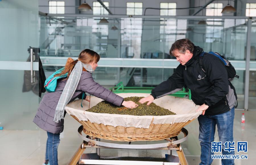 這是2020年12月19日,南非人肖恩和女兒瑞貝卡·尼什在茶廠體驗茶葉制作。新華社記者 白斌攝