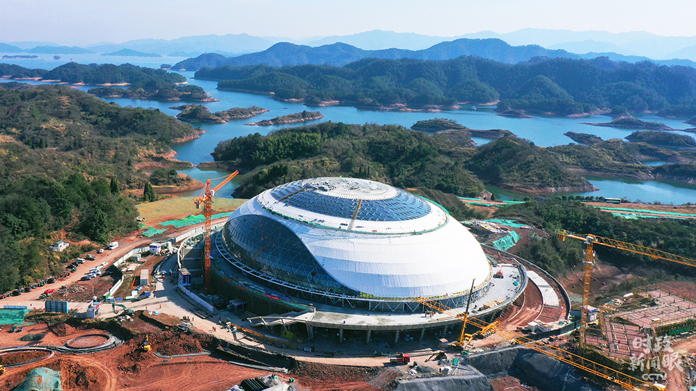 △1月10日,浙江杭州,2022年亞運(yùn)會淳安場地自行車館正加緊建設(shè)中,爭取今年3月底前完成竣工驗(yàn)收。