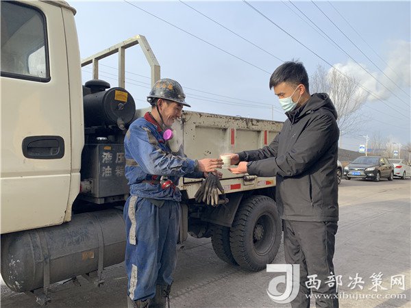 寒風(fēng)阻擋不住一心為職工送溫暖的熱情,該支部黨員志愿者冒著嚴(yán)寒,為地面室外下料職工送上了一雙雙厚實(shí)保暖的手套、暖心的奶茶,囑咐他們注意保暖,預(yù)防感冒,特殊天氣更要提高防護(hù)意識,確保安全生產(chǎn)。