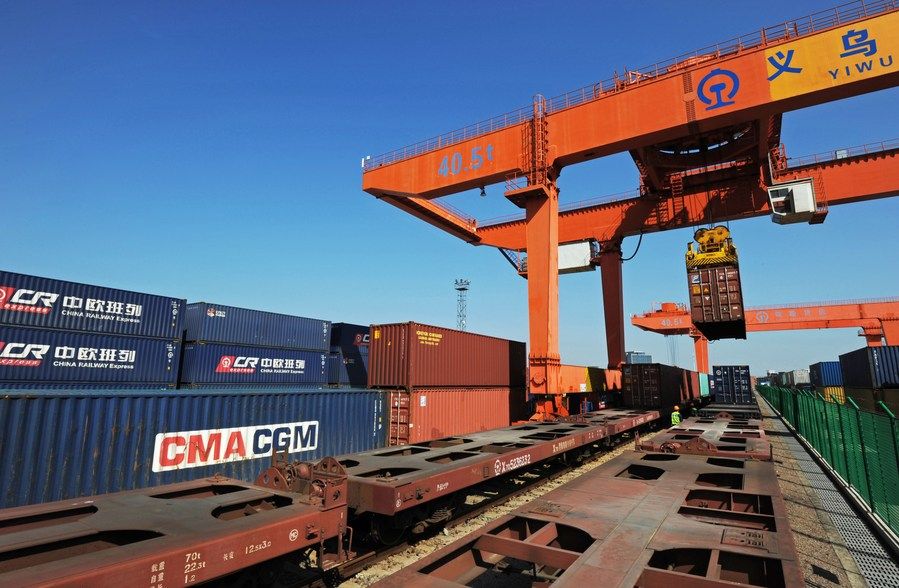 2014年11月18日,中歐班列(義烏)——“義新歐”從義烏西站始發(fā),途經(jīng)哈薩克斯坦、俄羅斯、白俄羅斯、波蘭等國家,歷時(shí)21天,最終抵達(dá)西班牙首都馬德里。這條全長1.3萬公里的中歐班列鐵路線,打開了義烏和歐洲經(jīng)貿(mào)往來的新通道。