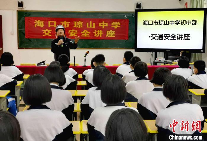 在三亞紅沙魯迅中學(xué),紅沙海岸派出所民警通過梳理近年來轄區(qū)未成年違法犯罪典型案例,為學(xué)生們講解當前青少年違法犯罪常見問題,以及如何約束自我、加強自我保護等法律知識。