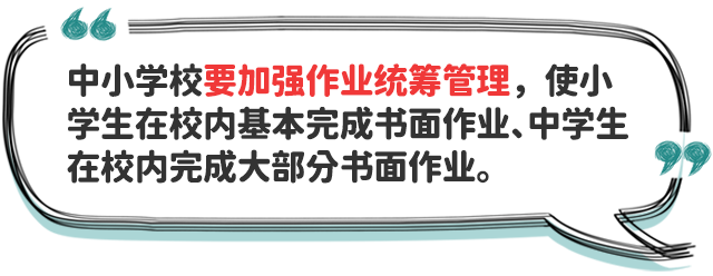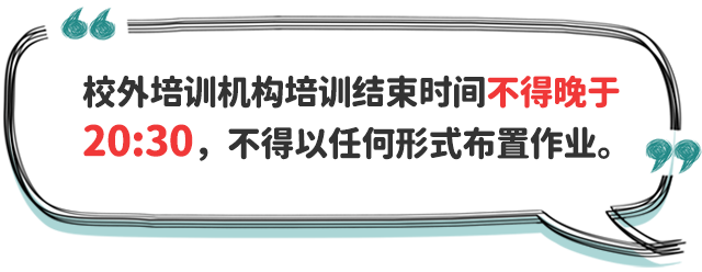 四、防止學(xué)業(yè)過(guò)重?cái)D占睡眠時(shí)間。中小學(xué)校要提升課堂教學(xué)實(shí)效,加強(qiáng)作業(yè)統(tǒng)籌管理,嚴(yán)格按照有關(guān)規(guī)定要求,合理調(diào)控學(xué)生書(shū)面作業(yè)總量,指導(dǎo)學(xué)生充分利用自習(xí)課或課后服務(wù)時(shí)間,使小學(xué)生在校內(nèi)基本完成書(shū)面作業(yè)、中學(xué)生在校內(nèi)完成大部分書(shū)面作業(yè),避免學(xué)生回家后作業(yè)時(shí)間過(guò)長(zhǎng),擠占正常睡眠時(shí)間。校外培訓(xùn)機(jī)構(gòu)培訓(xùn)結(jié)束時(shí)間不得晚于20:30,不得以課前預(yù)習(xí)、課后鞏固、作業(yè)練習(xí)、微信群打卡等任何形式布置作業(yè)。