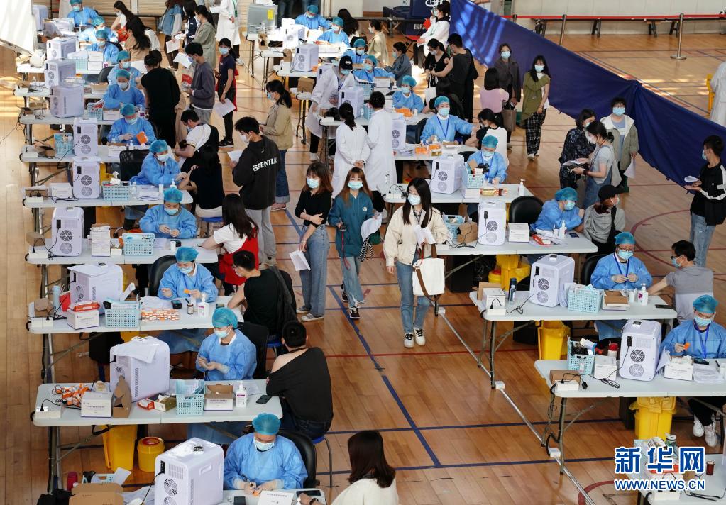 2021年3月28日,在華東師范大學閔行校區(qū)體育館內,師生們在接種新冠疫苗。新華社記者 劉穎 攝