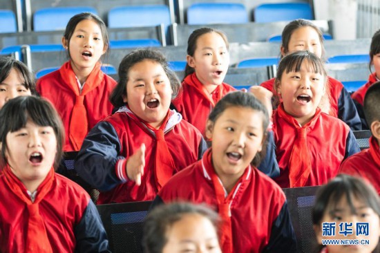 在黑龍江省安達(dá)市任民鎮(zhèn)中心小學(xué),“村里的孩兒”音樂(lè)班的孩子在練習(xí)合唱(5月27日攝)。新華社記者 黃騰 攝