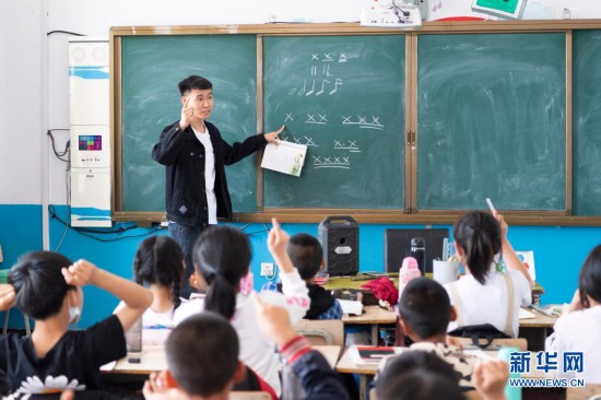在黑龍江省安達(dá)市任民鎮(zhèn)中心小學(xué),音樂(lè)老師李平在教室里上音樂(lè)課(5月25日攝)。新華社記者 謝劍飛 攝