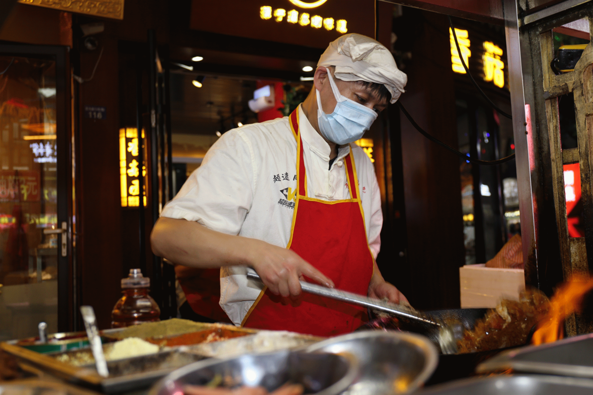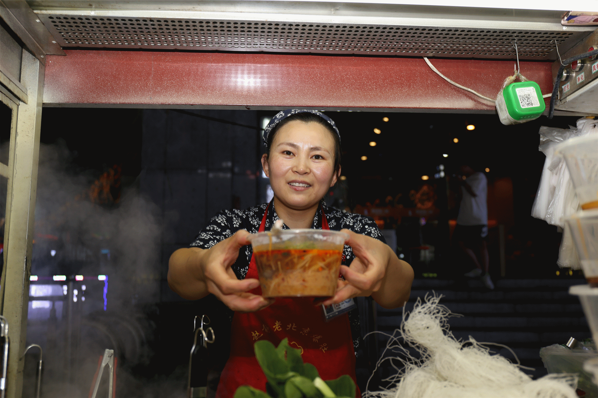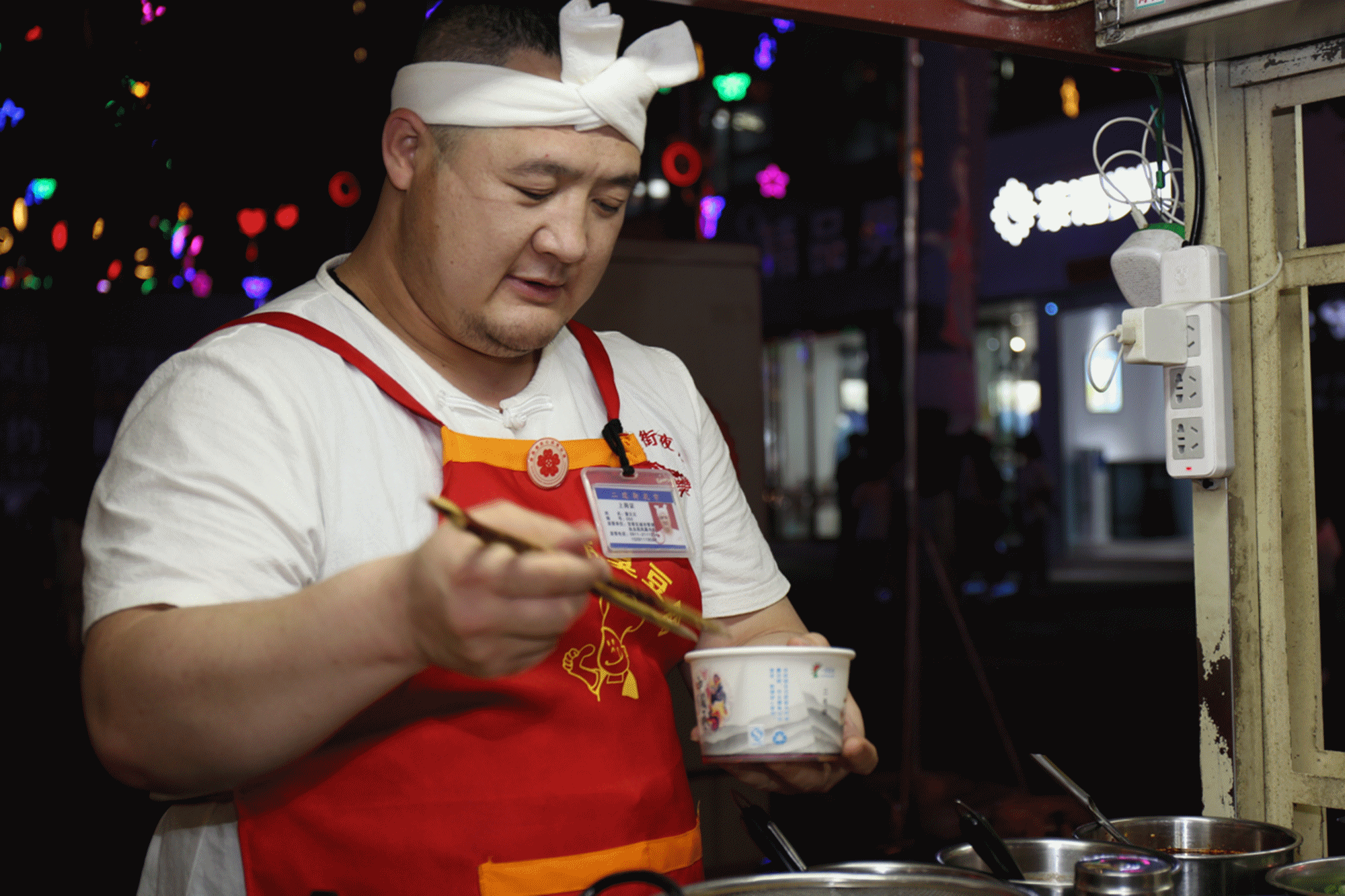 二道街,從18:00開始,道路兩旁才多了一些忙碌的身影。準備食材、搭爐灶、擺桌椅,商販們一天的工作開始了。隨著人流逐漸增多,道路也變得擁擠起來。這種熙熙攘攘的氛圍,讓人心里感到特別踏實。