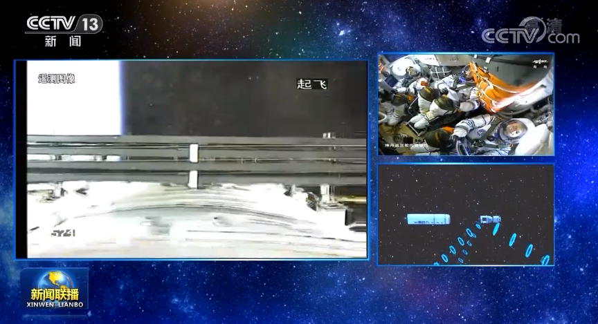 約573秒后,神舟十二號(hào)載人飛船與火箭成功分離,進(jìn)入預(yù)定軌道,順利將聶海勝、劉伯明、湯洪波3名航天員送入太空,飛行乘組狀態(tài)良好,發(fā)射取得圓滿成功。