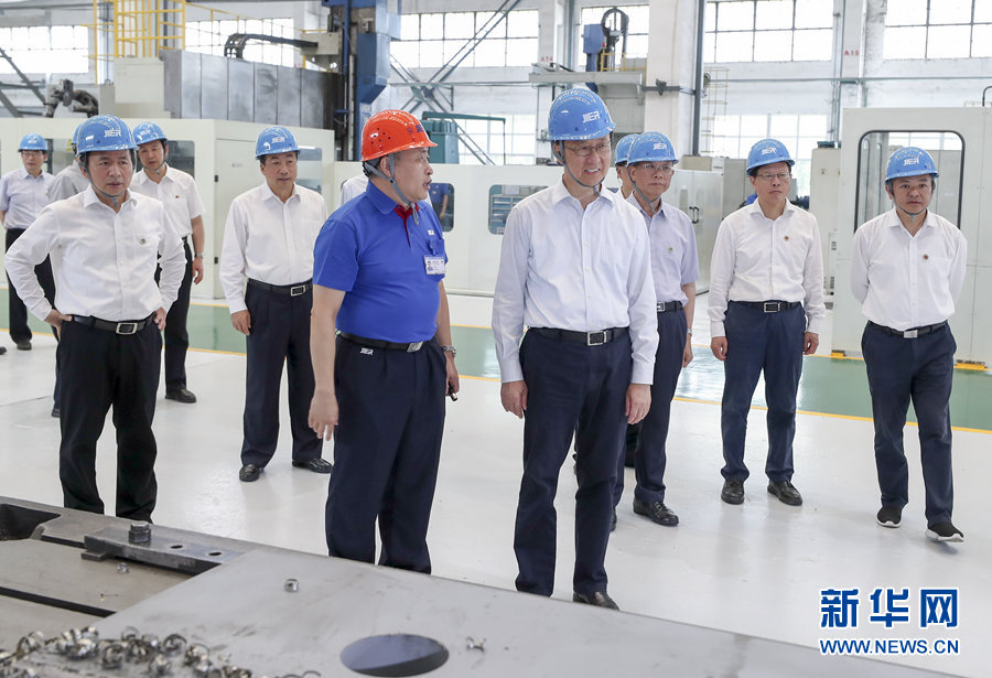 7月5日至6日,中共中央政治局常委、國務(wù)院副總理韓正先后在山東東營、濟(jì)南調(diào)研。這是7月6日,韓正在濟(jì)南二機(jī)床集團(tuán)有限公司考察企業(yè)生產(chǎn)運(yùn)營和技術(shù)研發(fā)情況。新華社記者 姚大偉 攝