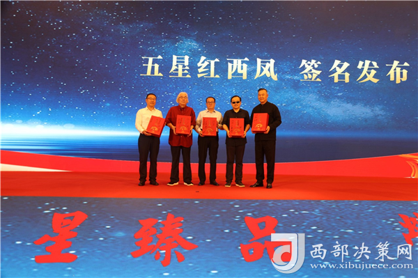 國(guó)務(wù)院首批特殊津貼專家、西北大學(xué)中國(guó)文明史研究院院長(zhǎng)孫皓暉,陜西師范大學(xué)歷史文化學(xué)院教授、博士生導(dǎo)師于賡哲,陜西省工信廳原副巡視員、陜西省輕工業(yè)協(xié)會(huì)原會(huì)長(zhǎng)張鑒,西鳳集團(tuán)公司黨委書(shū)記、董事長(zhǎng),股份公司董事長(zhǎng)張正,陜西禧福祥商貿(mào)有限公司董事長(zhǎng)王延安共同上臺(tái)為五星紅西鳳簽名,宣告五星紅西鳳正式上市發(fā)布,西鳳酒的高端化之旅再上新臺(tái)階。