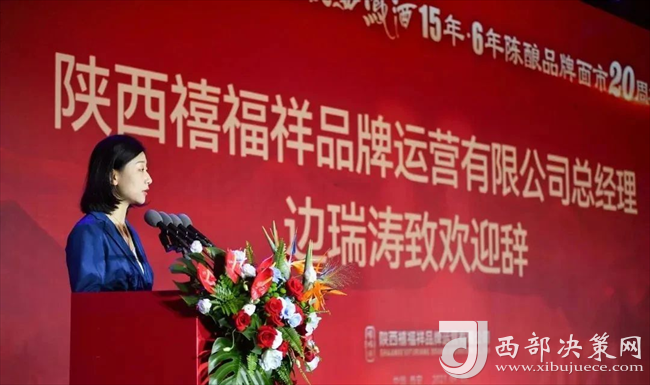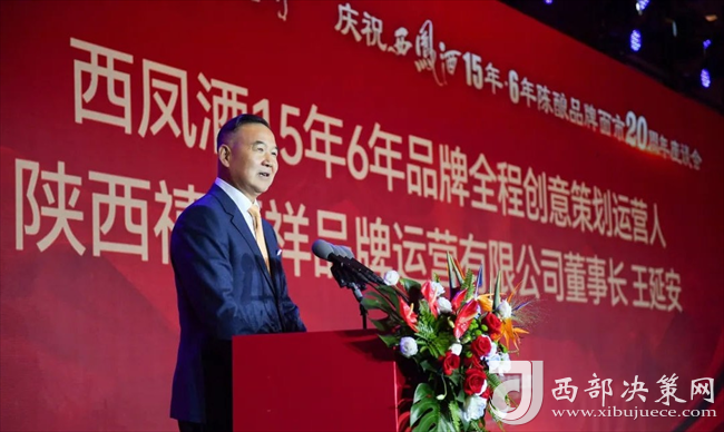 西鳳酒15年6年品牌全程創(chuàng)意策劃運(yùn)營(yíng)人、陜西禧福祥品牌運(yùn)營(yíng)有限公司董事長(zhǎng)王延安發(fā)表講話。王延安董事長(zhǎng)對(duì)支持西鳳酒15年6年陳釀品牌發(fā)展的西鳳酒廠各級(jí)領(lǐng)導(dǎo)、全省合作盟友、供應(yīng)商、媒體朋友及社會(huì)各界朋友表示感謝!風(fēng)雨同舟20載,攜手并進(jìn)創(chuàng)輝煌。一切美好生活的實(shí)現(xiàn)都包含在“禧福祥”三個(gè)字里。