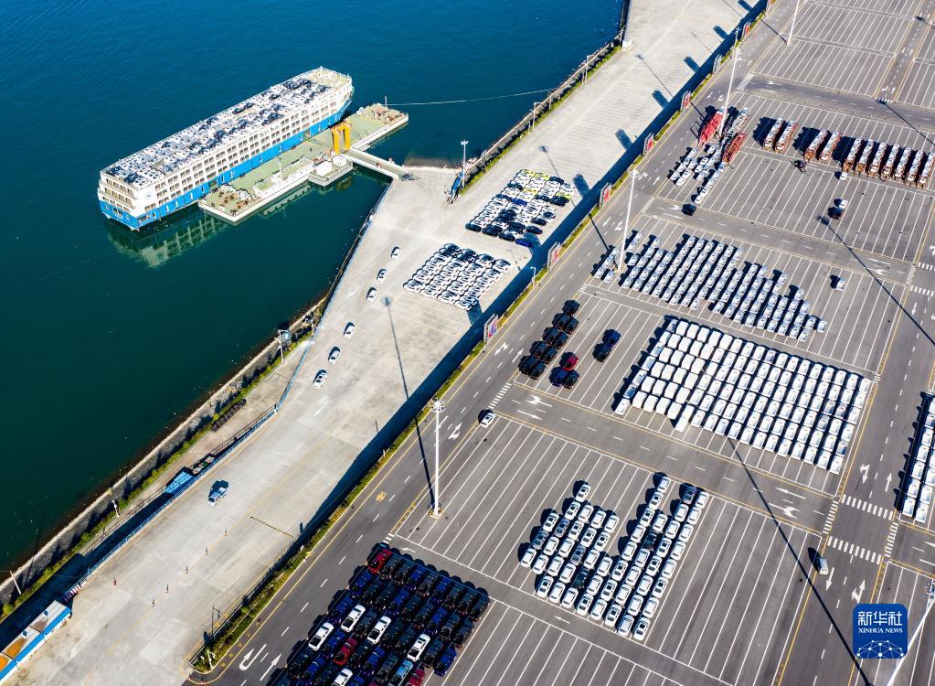 這是三峽庫區(qū)湖北省宜昌市秭歸縣秭歸港車輛分撥轉運現(xiàn)場(2020年11月13日攝,無人機照片)。新華社發(fā)(鄭家裕 攝)